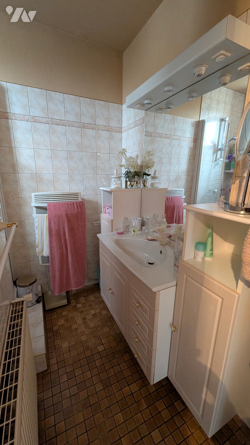 - A l'étage : palier, trois chambres, w.c. avec lave mains, petit grenier.
